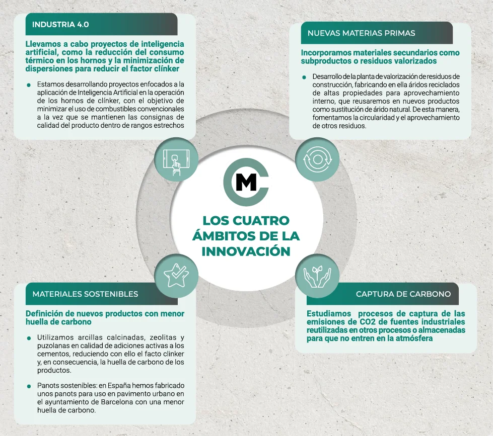 La innovación en el sector de materiales de construcción es un elemento clave para lograr un crecimiento sostenible mediante la búsqueda de soluciones eficientes que reduzcan nuestra huella de carbono y mejoren la accesibilidad de los productos. En un entorno de transformación  tecnológica y de creciente regulación, resulta esencial dinamizar y digitalizar los procesos industriales para seguir en la vanguardia del sector y reducir el impacto en toda la cadena de valor.