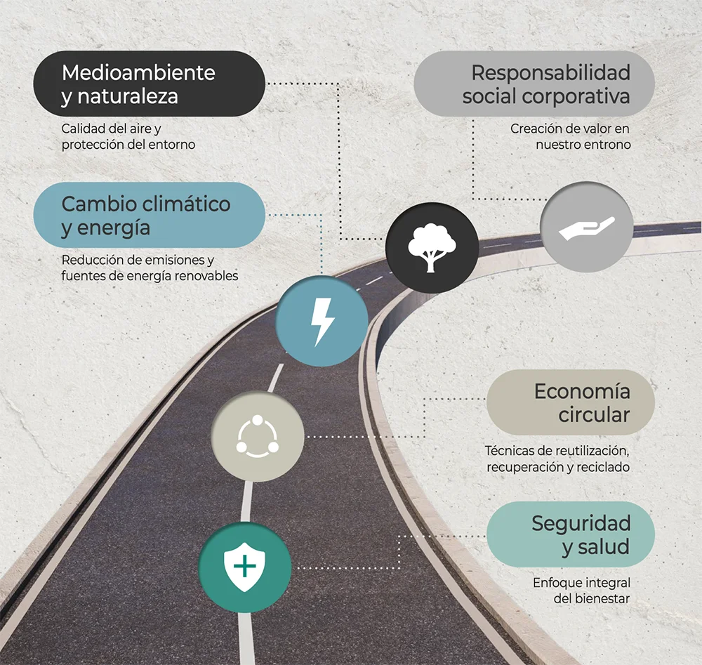 • Diferentes centros tecnológicos, para analizar todas aquellas actividades de sostenibilidad más innovadoras (captura, almacenamiento y uso de carbono, nuevos materiales distintos de los cementos y hormigones convencionales…).